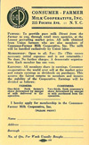 An early logo for the Consumer-Farmer Milk Cooperative showing two farmers pushing against a "milk trust" boulder. The Co-op was the first organization to bring milk into New York City from less- expensive farms 400 miles away. Their special vacuum tank trucks kept milk fresh longer. Courtesy of the Parodneck Foundation.