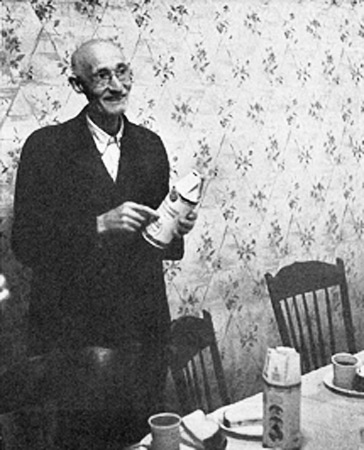 A New York dairy farmer tastes Co-op milk from Meyer Parodneck's cylindrical paper containers - a hallmark of the Co-op. Courtesy of the Parodneck Foundation.