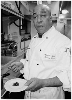 Do you pick up new recipes by trying new food? I have a recipe book and I teach everyone to do the stuff. When I’m not here, the sous chef is in charge. He works with me. I’m on the line, I don’t just expedite. I oversee the grill steak on the grill. I finish the dish, there are a lot of stuff that I do… but nobody calls me “chef.” I’m just the same as them. If I have to do dishwasher, I know what to do. I never ask somebody to do something I don’t do myself. I’m here at [noon] and I close the kitchen on weekdays we close at 11:30[pm], Sundays at 11[pm], weekends we close at 12 [midnight]. Awhile ago I started volunteering with Share Our Strength. Kids are what I really like the most… I [also] teach people with AIDS, teaching nutrition… what you can buy for $10, what you have to look for when you go shopping, don’t buy too much because they are on sale, because you aren’t going to eat it, especially if you live alone, low fat content, a lot of protein. Senior citizens know how to cook, but they don’t eat too much vegetables. So I show them like a shake, with fresh fruits, because it is easy, and there are certain techniques you know like I teach them certain techniques, how you can peel a mango… There is a technique, especially me, you know, if I’m going to make a salsa, and I’m going to make 40 orders of fish, so I have a technique to do that. |