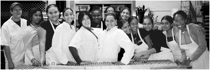 Sweet Things Bakeshop Program Associate Miladys Ramirez bakes for and helps run the Girls’ Club Brain-Trust and We Mean Business programs. She introduces many of the girls as “she’s like my daughter.” Amanda, Miladys’ niece, never liked cooking before, but now does. Someday she may be a chef or open a restaurant. Miladys: I started volunteering one December, we were baking cookies, and I just started baking and I thought, it’s really not me, but I’m stuck here. It was okay, because I learned so much, now I know how to bake muffins and how to bake cookies from scratch. 5 years ago I started bringing my girls here, and went from being volunteer, to part-time 3 years, full-time a year.